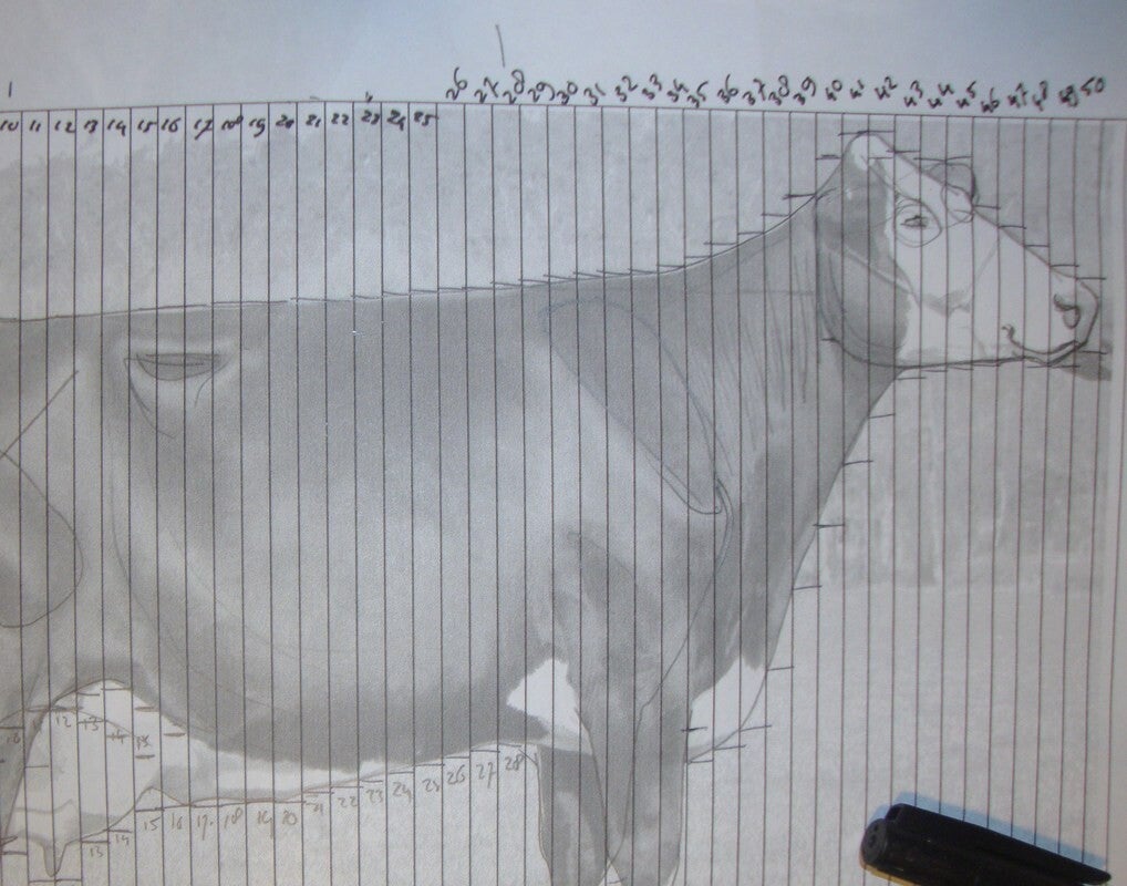 Daarnaast zijn, voor het goed en natuurgetrouw weergeven van de koe, de verhoudingen van groot belang. Hoewel een koe robuust is, heeft ze ook fijne kenmerken. De romp is groot en log, terwijl de poten in verhouding bijzonder dun zijn. Het doel van Theus is om het dier altijd levensecht weer te geven.
